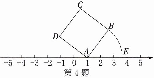 4. 如图,边长为$\sqrt{7}$的正方形ABCD的顶点A在数轴上,且点A表示的数为1.若点E在数轴上(点E在点A的右侧),且$AB=AE$,则点E表示的数为 (