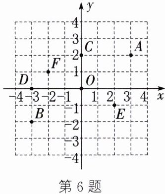 6. (教材 P66 练习第 1 题变式)如图,写出图中点$A,B,C,D,E,F,O$的坐标.