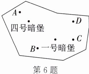 6. 如图所示为一防御工程的坐标地图碎片. 若一号暗堡的坐标为 $(2,1)$,四号暗堡的坐标为 $(-1,3)$,指挥部的坐标为 $(0,0)$,则指挥部可能在 (