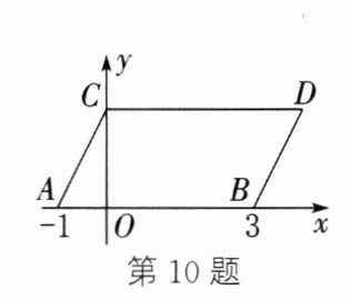 10. (易错题)如图,在平面直角坐标系中,点A,B的坐标分别为(-1,0),(3,0),现同时将点A,B先向上平移2个单位长度,再向右平移1个单位长度,分别得到点A,B的对应点C,D,顺次连接AB,BD,DC,CA得到平行四边形ABDC. 在y轴上存在一点P,连接PA,PB,使S三角形PAB=S平行四边形ABDC,则点P的坐标为