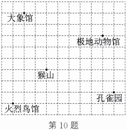 10.建立平面直角坐标系如图所示 大象馆(−2,6),猴山(0,1),火烈鸟馆(−3,−2)