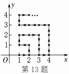 13. 在平面直角坐标系中,有若干个横、纵坐标均为整数的点,按如图所示的顺序依次排列为点 $ (1,0),(2,0),(2,1),(1,1),(1,2),(2,2),··· $.根据这个规律,第 $ 2026 $ 个点的坐标为 (