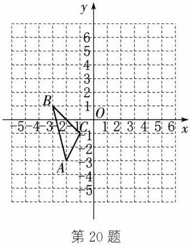20.(1)如图,三角形OB₁C₁即为所求 B₁(−1,4),C₁(1,2)