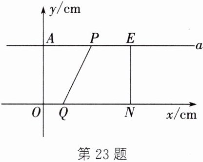 (2) 如图,若 $ E $ 是第一象限内一点,且 $ EN⊥ x $ 轴,过点 $ E $ 作 $ x $ 轴的平行线 $ a $,与 $ y $ 轴交于点 $ A $,点 $ P $ 从点 $ E $ 处出发,以 $ 2cm/s $ 的速度沿直线 $ a $ 向左移动,点 $ Q $ 从原点 $ O $ 同时出发,以 $ 1cm/s $ 的速度沿 $ x $ 轴向右移动.