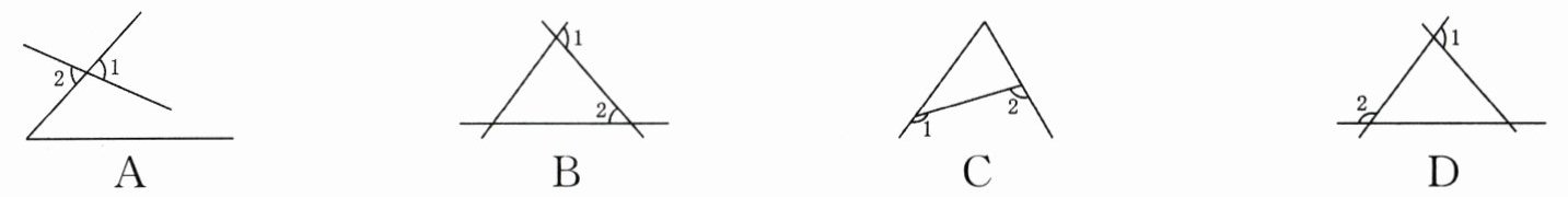 1. 下列四幅图中,∠1 和∠2 是同旁内角的为(
