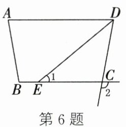 6. 如图,∠A 与∠B 互补,DE 平分∠ADC,∠1 = 40°,那么∠2 的度数为(