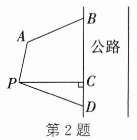 2. 如图,小华同学的家在点 P 处,他想尽快到达公路边乘车到学校,他选择沿线段 PC 去公路边,他的这一选择用到的数学知识是(