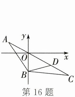 16. 如图,在平面直角坐标系中,将点 $M(m,3m - 5)$ 先向左平移 2 个单位长度,再向下平移 3 个单位长度到点 $B$,点 $B$ 在 $y$ 轴上,则点 $B$ 的坐标为
