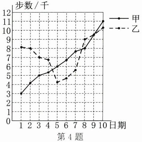 4. 如图所示为某月1~10日甲、乙两人的运动步数统计图,下列结论错误的是(