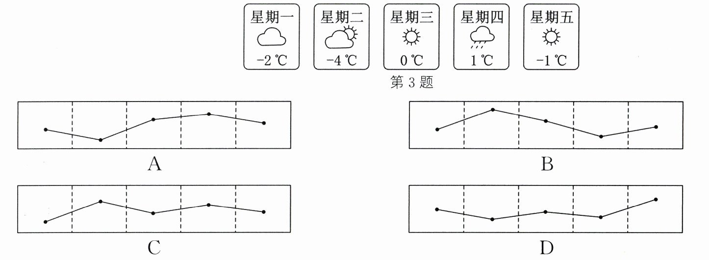 3. 如图显示了某地连续5天的日最低气温,则能表示这5天日最低气温变化情况的是(
