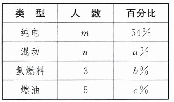 (4)4000×(54%+30%+6%)=3600(人).答:估计喜欢新能源(纯电、混动、氢燃料)汽车的有3600人