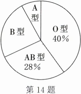 14. 已知七年级(3)班共有学生 50 人,其中 B 型血有 12 人,这个班的血型情况如图所示,则这个班的 A 型血有