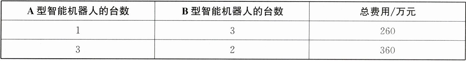 答案:(1)设A型智能机器人的单价为$x$万元,B型智能机器人的