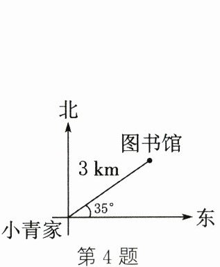 4. 如图,用方向和距离描述图书馆相对于小青家的位置是(