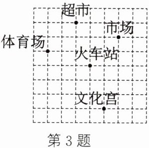 3. 如图所示为某火车站及周围的平面示意图,超市的坐标为$(-2,4)$,市场的坐标为$(1,3)$.