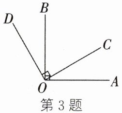 3. 如图,$OA⊥ OB$,$OC⊥ OD$,垂足为 $O$,$\angle AOD = 120^{\circ}$,则 $\angle COB$ 的度数为