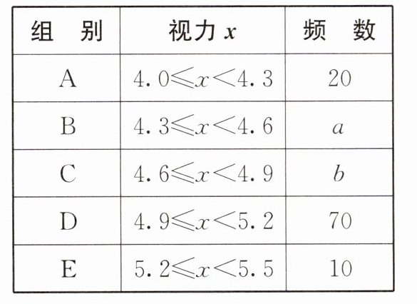(4)若视力在4.9以上(含4.9)均属正常,根据上述信息估计该市七年级学生视力正常的人数。