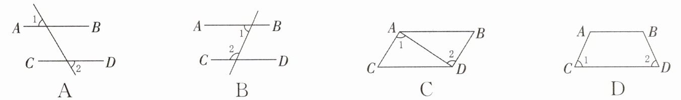 2. 如图,下列条件中,不能判定$AB// CD$的是(