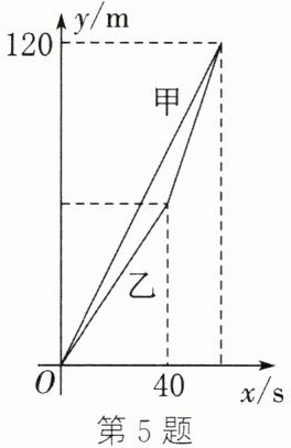 5. 某科技公司对甲、乙两款人形机器人的行走性能进行测试.已知测试跑道AB的长为120m,甲、乙两款机器人同时从起点A向终点B行走,甲机器人以2m/s的速度匀速行走,乙机器人以a m/s的速度匀速行走了40s后,再以2a m/s的速度匀速行走,结果两款机器人同时到达终点B.若两款机器人距离起点A的路程y(m)与行走时间x(s)之间的函数关系如图所示,则甲、乙两款机器人出发