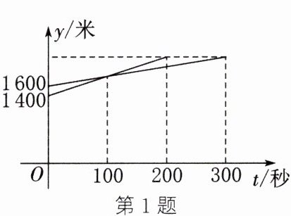 1. 一次越野跑中,当小明跑了1600米时,小刚跑了1400米,小明、小刚在此后所跑的路程y(米)与时间t(秒)之间的函数关系如图所示,则这次越野跑的全程是(