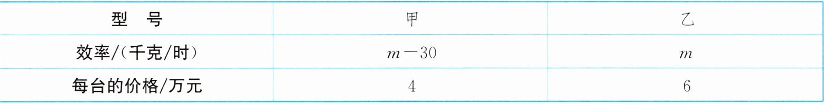 综上,答案为:(1)$m = 90$;(2)购买甲型机器人$6$台,乙型机器人$4$台时总费用最少,最少总费用是$48$万元。