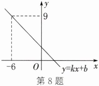 8. 如图所示为一次函数 $ y = kx + b $ 的图象,则关于 $ x $ 的方程 $ kx + b = 9 $ 的解为