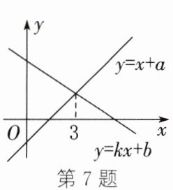 7. 一次函数 $ y = kx + b $ 与 $ y = x + a $ 的图象如图所示,给出下列结论:① $ k < 0 $;② $ a > 0 $;③ 当 $ x < 3 $ 时,$ kx + b < x + a $。其中,正确的是