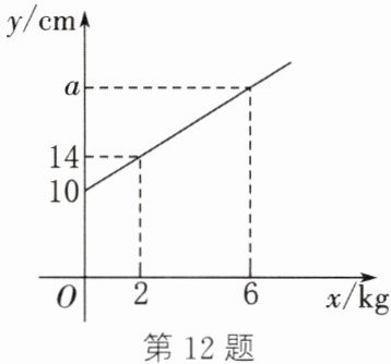 12.(2025·南通期末)一个弹簧不挂重物时长 $ 10 $ cm,挂上重物后,在弹性限度内,弹簧伸长的长度与所挂重物的质量成正比,弹簧总长 $ y $(单位:cm)关于所挂物体质量 $ x $(单位:kg)的函数图象如图所示,则图中 $ a $ 的值是