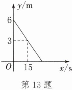 答案:13. (1)设y关于x的函数解析式为y = kx + b.由题意,得$\begin{cases}b = 6\\15k + b = 3\end{cases}$,解得$\begin{cases}k = -\frac{1}{5}\\b = 6\end{cases}$,