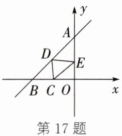 17. 如图,直线 $ y = x + 1 $ 与 $ y $ 轴、$ x $ 轴分别交于 $ A $,$ B $ 两点,$ C $ 是 $ OB $ 的中点,$ D $,$ E $ 分别是直线 $ AB $,$ y $ 轴上的动点,则 $ \triangle CDE $ 的周长的最小值是(