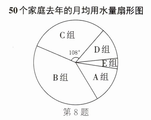 8. 我国淡水资源相对缺乏,节约用水应成为人们的共识.为了解某小区的家庭用水情况,随机调查了该小区50个家庭去年的月均用水量(单位:吨),绘制出如下未完成的统计图表.