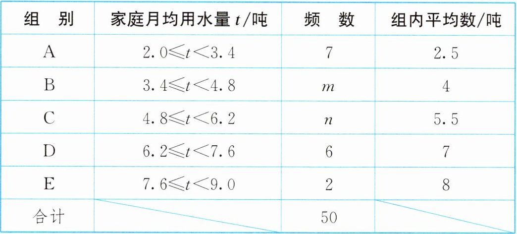 ;(2)运用组内平均数,求这50个家庭的总用水量;