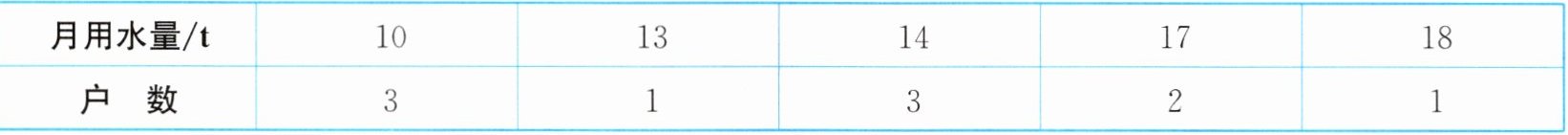 将10户家庭的月用水量按从小到大的顺序排列:10,10,10,13,14,14,14,17,17,18。