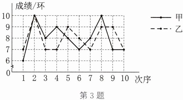 3. 甲、乙两名射击运动员进行射击比赛,两人在相同条件下各射击10次,射击的成绩如图所示.