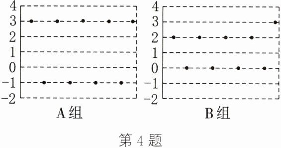 4. 如图,比较A,B两组数据的平均数及方差,下列说法中,正确的是(
