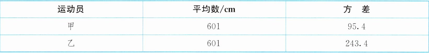 2. (2025·辽宁)甲、乙两名运动员进行跳远测试,每人测试10次,他们各自测试成绩的平均数和方差如下表: