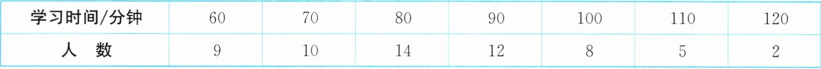 5. 某中学随机抽取了 60 名学生.统计了他们某天学习数学的时间,结果如下表: