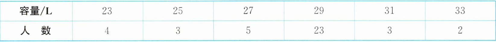 4. (2025·如皋期中)某班级计划利用暑假去研学旅行,他们准备定做一批容量相同的双肩包.活动负责人征求了全班40名同学的意向,得到如下数据: