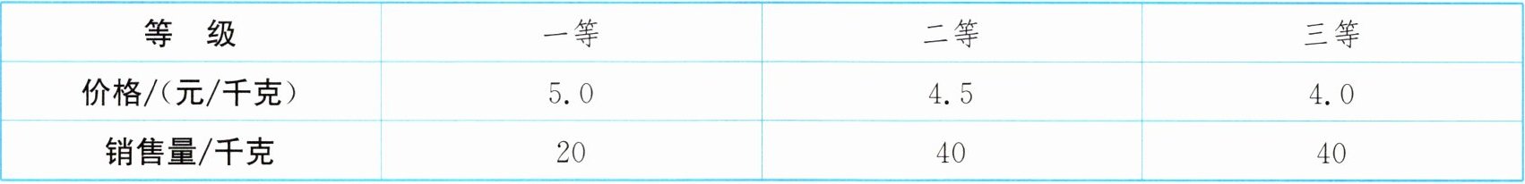 15. 某种蔬菜按品质分成三个等级销售,销售情况如下表.售出蔬菜的平均价格为