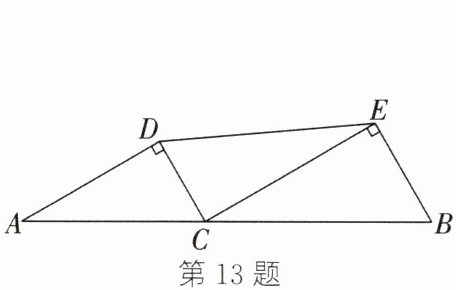 13. 如图,线段$AB$的长为$8$,$C$为$AB$上一动点,分别以$AC$,$BC$为斜边在$AB$的同侧作两个直角三角形$(\triangle ACD$和$\triangle BCE)$,其中$\angle ADC = \angle CEB = 90^{\circ}$,$\angle A = 30^{\circ}$,$\angle B = 60^{\circ}$,则$DE$长的最小值是