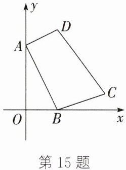 15. 如图,在平面直角坐标系中,四边形$ABCD$的顶点坐标分别为$A(0,4)$,$B(2,0)$,$C(5,1)$,$D(2,5)$。