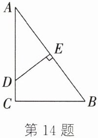 14. 如图,在$\triangle ABC$中,边$AB$上的垂直平分线$DE$与$AB$,$AC$分别交于点$E$,$D$,且$BC^{2} = AD^{2}-CD^{2}$。