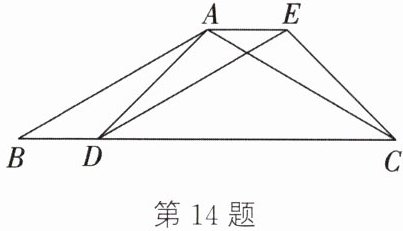 14. 如图,四边形$ABDE$是平行四边形,$C$为边$BD$的延长线上一点,连接$AC$,$CE$,$AD$,其中$AB = AC$。