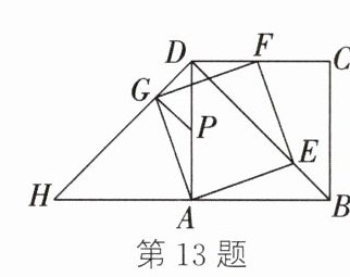13. 如图,$E$是边长为$8$的正方形$ABCD$的对角线$BD$上的一个动点(不与点$B$,$D$重合),连接$AE$,以$AE$为边向左侧作正方形$AEFG$,$P$为$AD$的中点,连接$PG$,$DG$,$DG$的延长线与$BA$的延长线交于点$H$,在点$E$的运动过程中,线段$PG$长的最小值是