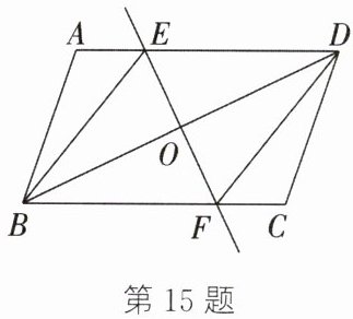 15. (2024·雅安)如图,$O$是$□ ABCD$对角线的交点,过点$O$的直线分别交$AD$,$BC$于点$E$,$F$。