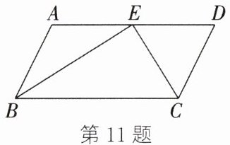 11. 如图,在$□ ABCD$中,$AB = 2$,$\angle ABC$的平分线与$\angle BCD$的平分线交于点$E$。若点$E$恰好在边$AD$上,则$BE^{2} + CE^{2}$的值为