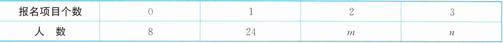 报名项目个数为0的有8人,1的有24人,2的有$m$人,3的有$n$人,且$m$、$n$为非负整数。