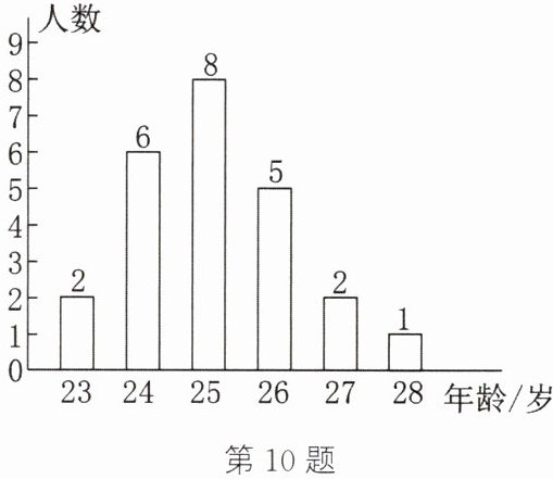 10. 某男子足球队队员的年龄分布如图所示,则这些队员年龄的众数是