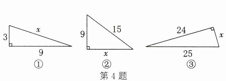4. (教材变式)如图,求图中各直角三角形的未知边长x.