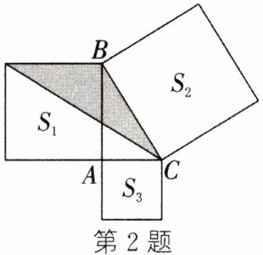由勾股定理得$a^{2}=b^{2}+c^{2}$,即$S_{2}=S_{3}+S_{1}$。
